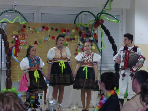 Úprimné nadšenie zamestnancov a rodičov školy sa podpísalo pod príjemnú rodinnú atmosféru aj tohoročného plesu. Ten sa niesol v atmosfére a pestrých farieb karnevalu pod palmami a leta, ktoré mali zvýrazniť teplo ľudských vzťahov a radosť zo života. Pri vstupe do pestrofarebne vyzdobenej jedálne školy partnerka dostala karnevalovú reťaz uvitú z kvetov a partner cigáru.
