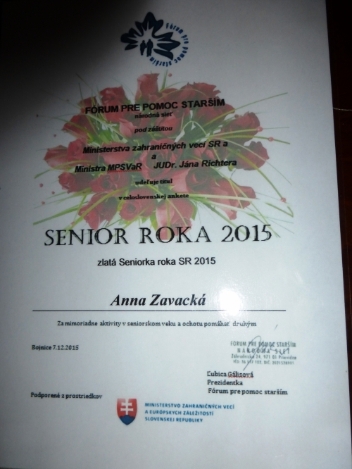 Anna Závacká sa stala seniorkou roka 2015