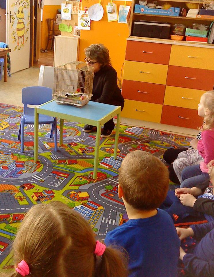 Božena Klimková hovorí o chove exotických operencov so žiakmi v našej škole a často zájde aj medzi deti do materskej škôlky.