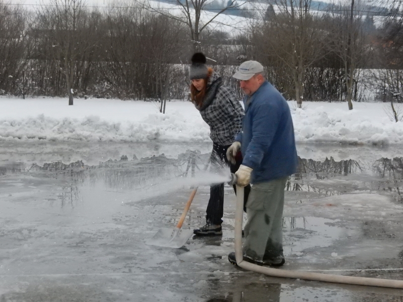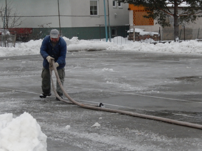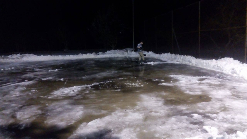 Po večeroch a nociach celý týždeň chlapci Jozef Moščovič, Kristián Foľvarský, Daniel Lang, Štefan Gurka, Andrej Vasilík, Adam Klimko, Martin Krafčík zalievali ľadovú plochu.