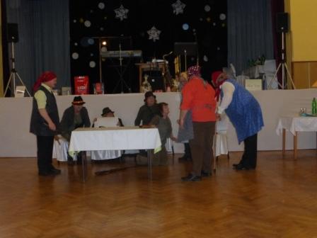 Divadelníci, ktorí sa stotožnili s divadelnou múzou a obetovali stovky hodín voľného času, pripravili humorné scénky podľa scenára svojej vedúcej PaedDr. Ľubomíry Šlampiakovej. Profesionálne výkony chmeľnických divadelníkov zdvíhali účastníkov plesu zo sedadiel a po každej scénke sa ozýval búrlivý potlesk. Divadelníci opäť potvrdili, že obetavosť, čas i talent priniesli svoje ovocie, nielen v nespočítateľnom množstve sprostredkovaných myšlienok, ale aj v podobe vysokého umeleckého kreditu samotného chmeľnického divadelného súboru, ktorý na každom svojom predstavení zapĺňa hľadisko sály kultúrneho domu v Chmeľnici nadšenými divákmi. Potvrdzuje sa tak, že umenie a kultúra sa rozvíjajú nie na základe peňazí, ale vďaka obetavosti ľudí, ktorí svoj talent nezakopali, ale rozvíjajú v prospech iných.