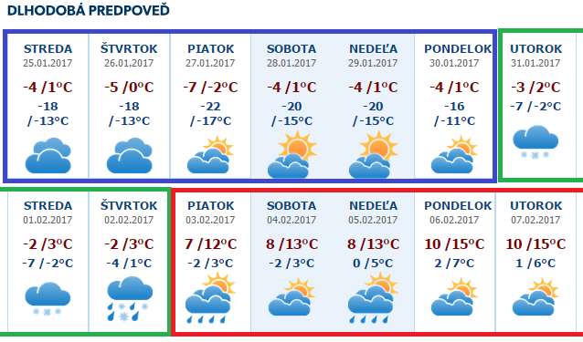 4 týždne pretrvávajúce studené počasie sa pomaly, ale isto blíži ku koncu - čaká náš už len posledný týždeň mrazov. Od začiatku februára nenápadne odštartuje dlhodobejšie oteplenie, dalo by sa povedať, že po dlhom období silných mrazov dorazí prvý pozdrav jari. Teploty budú naozaj jarné - okolo 7. februára sa dokonca neočakávajú ani ranné mrazy a denné teploty by mali vystupovať až do +15°C. Z jedného extrému tak opäť pôjdeme do druhého.