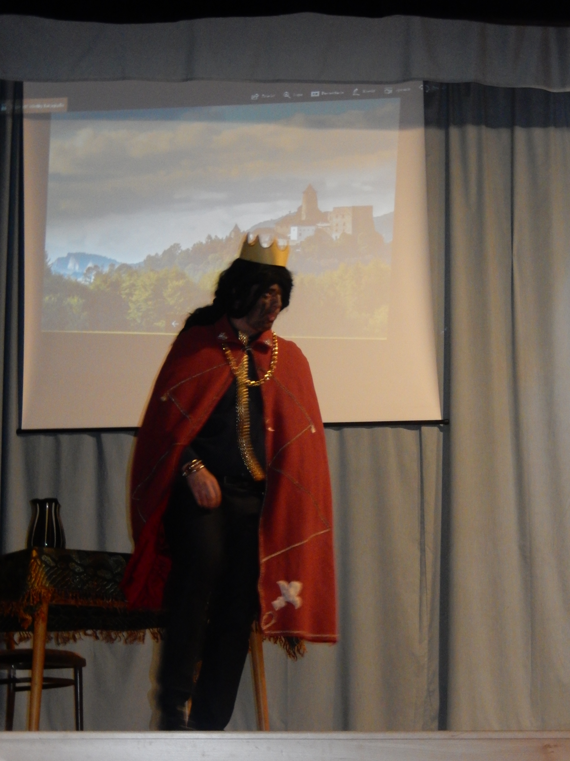 Keď bol hrad hotový, Ľubovenský oľutoval, že zaň zaplatil tak vysokú cenu a odišiel do neďalekého kláštora, aby sa vyspovedal. Diabol sa nahneval, že ho ľudský červ takto zradil a rozhodol sa , že hrad zničí obrovskou zahrotenou skalou. Tu však z kláštora zaznel zvon, čert stratil moc a skala mu vypadla z pazúrov na breh rieky Poprad. Odvtedy sa nazýva Čertovou skalou. Skvelé výkony hercov diváci ocenili na premiére niekoľko minútovým potleskom. Čertovú skalu na základe svojej fotografie vyhotovil Viliam Klimko.