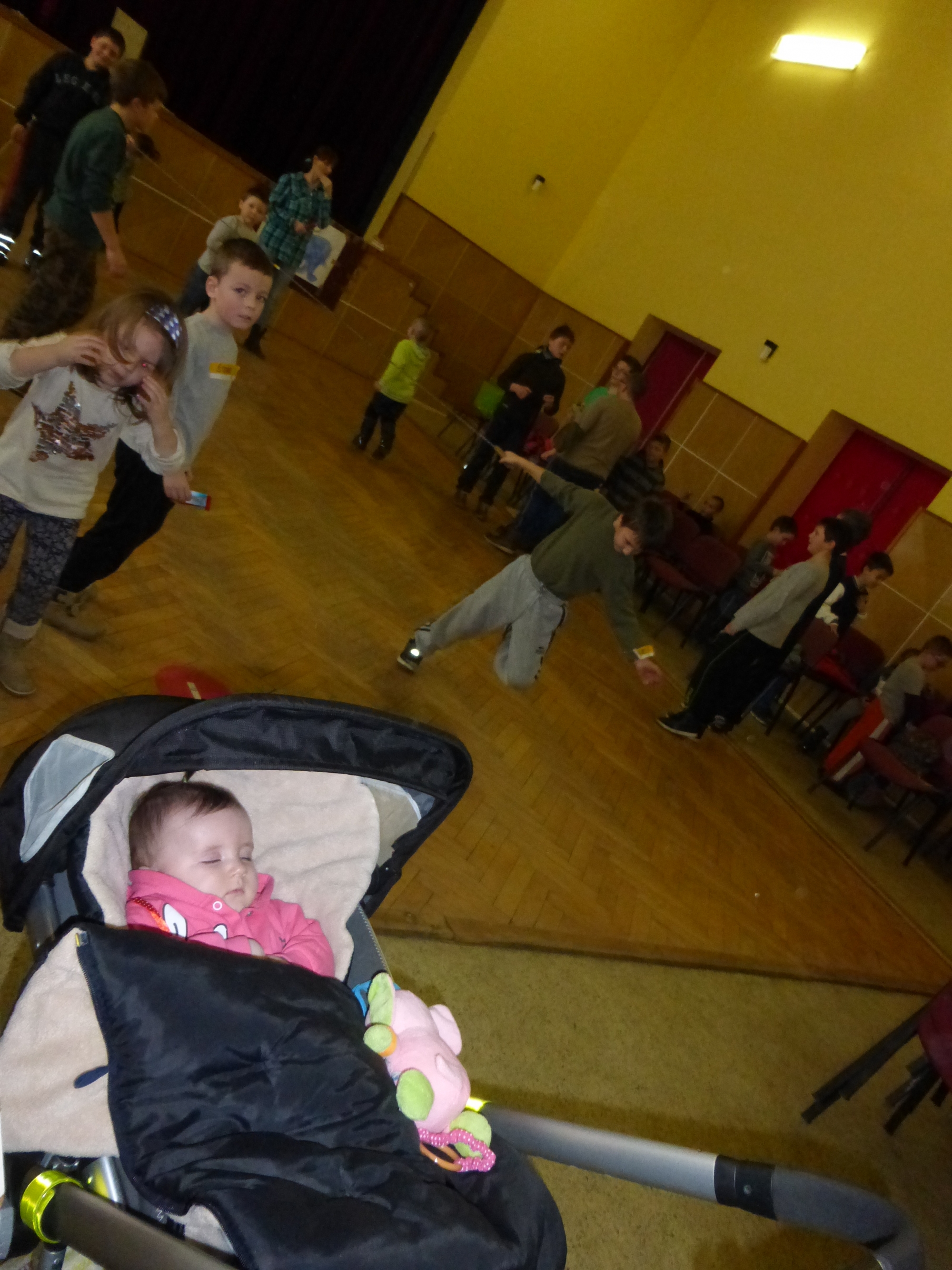 Kultúrny dom sa premenil nachvíľku na telocvičňu. V jednom kúte detičky kreslili. Iné sa hrali človeče, nehnevaj sa, rôzne loptové hry a iné zaujímavé súťaže plné dôvtipu, ktoré vyžadovali šikovnosť súťažiacich. Tímy chlapcov si vyskúšali aj preťahovanie lanom a dozvedeli sa, že táto športová disciplína bola súčasťou aj olympijských hier. Názov jedného z cvičení, ktoré likviduje kalórie, posilňuje každý jeden sval tela a ktoré môžeme robiť kdekoľvek a kedykoľvek je skákanie cez švihadlo. Tomuto športu patril tiež jeden kút v našej sály prerobenej na provizórnu telocvičňu. Dievčatá si vyskúšali aj cviky na gume. Niektoré cviky som si pamätala ešte z mladosti. Vtedy sme tablety a notebooky nepoznali a bola vždy super zábava.