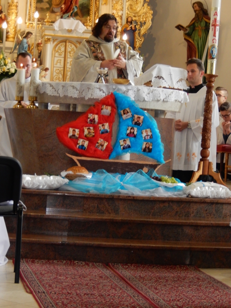 Svätú omšu celebroval duchovný otec vdp. Tomáš Gondkovský. Deti naozaj s veľkou radosťou a túžbou prežívali liturgiu. V homílii pán farár zdôraznil, aby si prvoprijímajúce deti, ich rodičia, krstní rodičia, ale i všetci prítomní uvedomili potrebu zodpovednosti za Loď – Cirkev.