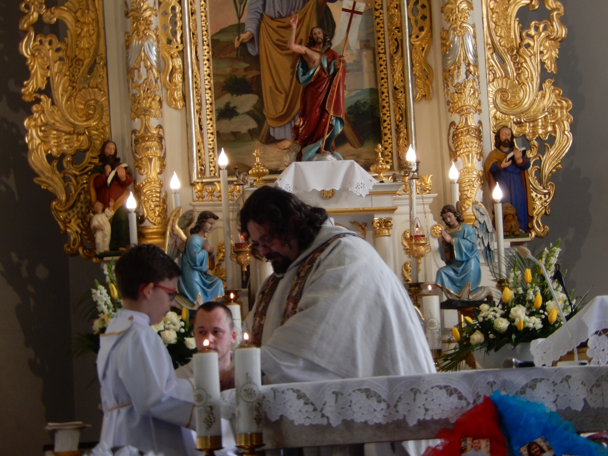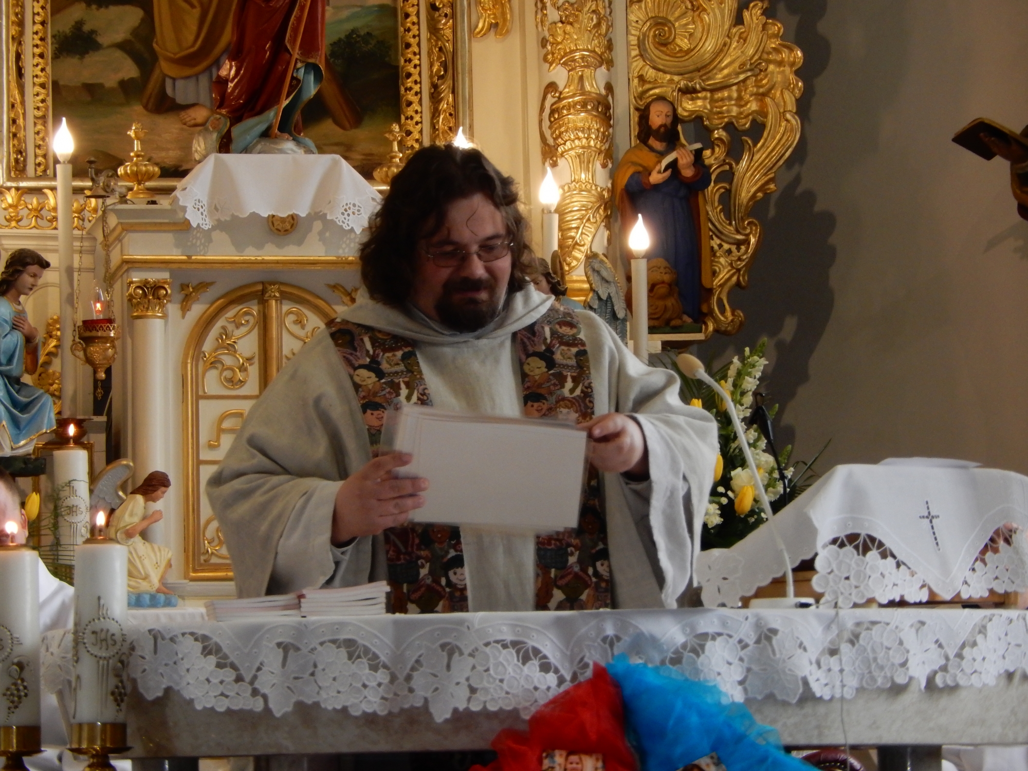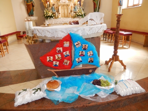 Svätú omšu celebroval duchovný otec vdp. Tomáš Gondkovský. Deti naozaj s veľkou radosťou a túžbou prežívali liturgiu. V homílii pán farár zdôraznil, aby si prvoprijímajúce deti, ich rodičia, krstní rodičia, ale i všetci prítomní uvedomili potrebu zodpovednosti za Loď – Cirkev.