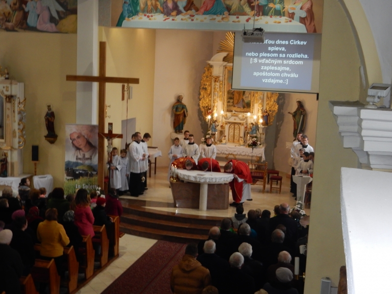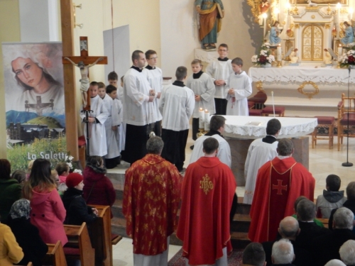 Náš duchovný otec pozval na túto slávnosť zástupcu z rehole misionárov Matky Božej lasalettskej. Páter Matej Trizuliak strávil medzi nami dva dni. Už včera pri sv. omši pútavo hovoril o poslaní tejto rehole. Povedal: "naším poslaním je šírenie posolstva zo zjavenia Panny Márie v La Salette a pozývanie človeka ku zmiereniu s Bohom, s druhými a so sebou samým." Rehoľa misionárov Matky Božej z La Salette je spojená s dedinkou La Salette, ktorá sa nachádza vo francúzskych Alpách v diecéze Grenoble. Za svoju slávu toto miesto vďačí zjaveniu Panny Márie 19.9.1846, keď sa "Krásna Pani" ukázala a odovzdala posolstvo dvom deťom: 11-ročnému Maximinovi a 15-ročnej Melánii. Obsahom posolstva bola výzva ľudí k obráteniu, pokániu a zmiereniu sa s Bohom, predpoveď Božích trestov pre hriešnikov a prisľúbenie mnohých milostí po obrátení. Dnes na sv.omši ku cti sv. Ondreja páter Matej bol hlavným celebrantom a v homílii okrem predstavenia rehole, priblíženia posolstva Panny Márie v La Salatte, vyzdvihol sv. Ondreja ako privádzača k Bohu. Potešila nás aj prítomnosť nášho kňaza Petra Duffalu na sv.omši. To všetko umocňovalo slávnostnosť tejto bohoslužby. Prvá lekcia, ktorú dáva Panna Mária v La Salette deťom, je lekcia modlitby. "Treba sa dobre modliť ráno i večer" - hovorí Mária. Snáď sme si ju všetci dobre zapamätali. Vďaka za možnosť spoznať rehoľu saletínov, za dobrú prípravu našej odpustovej slávnosti