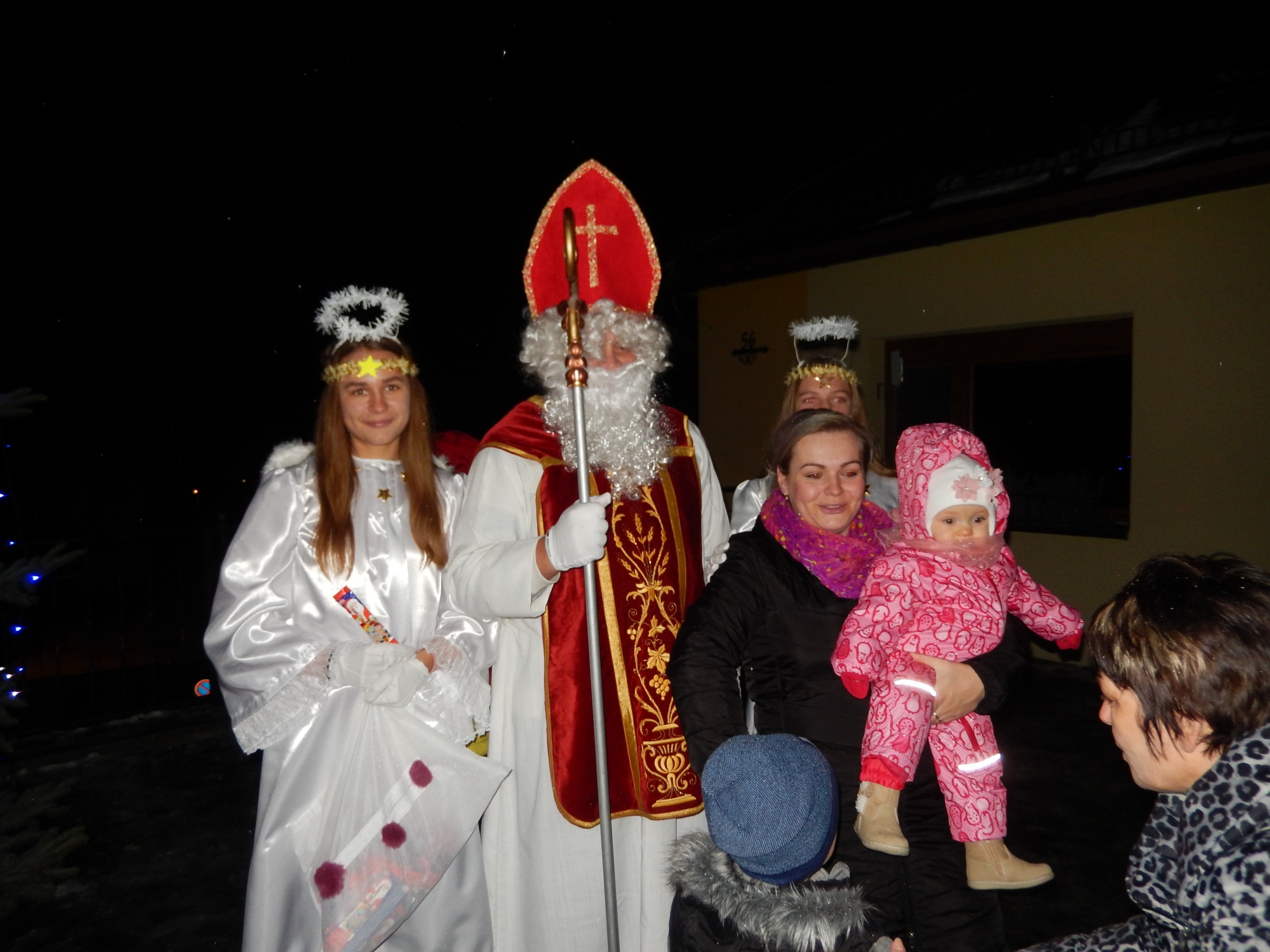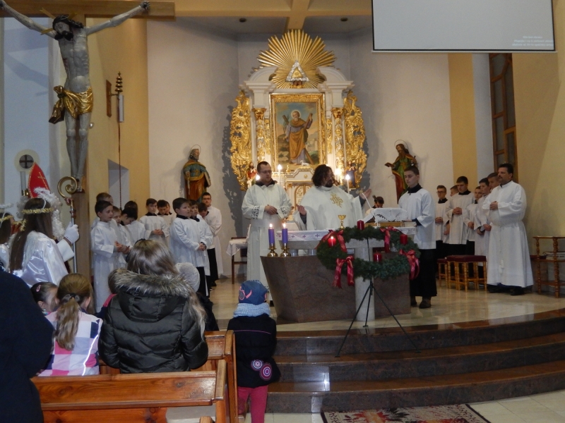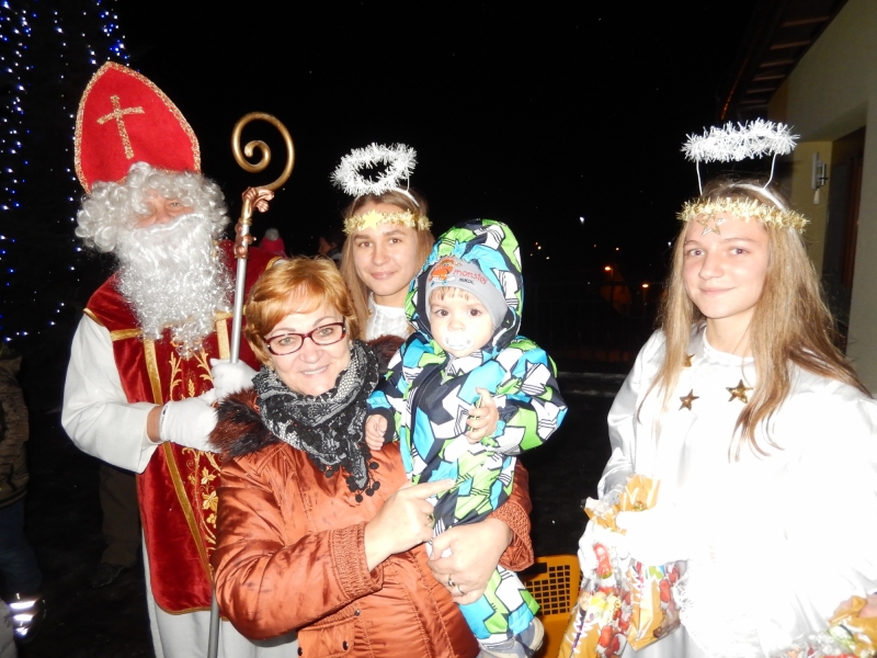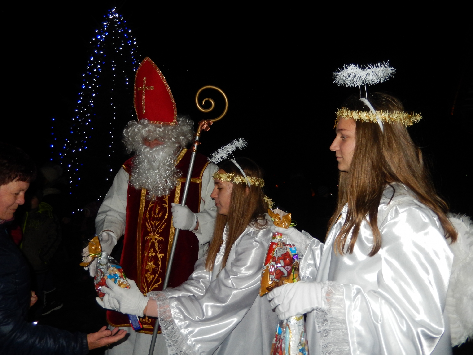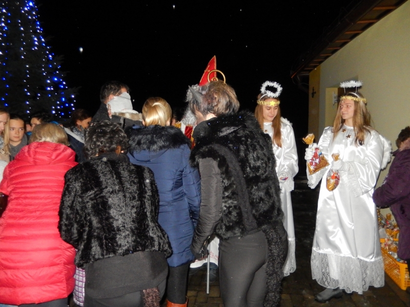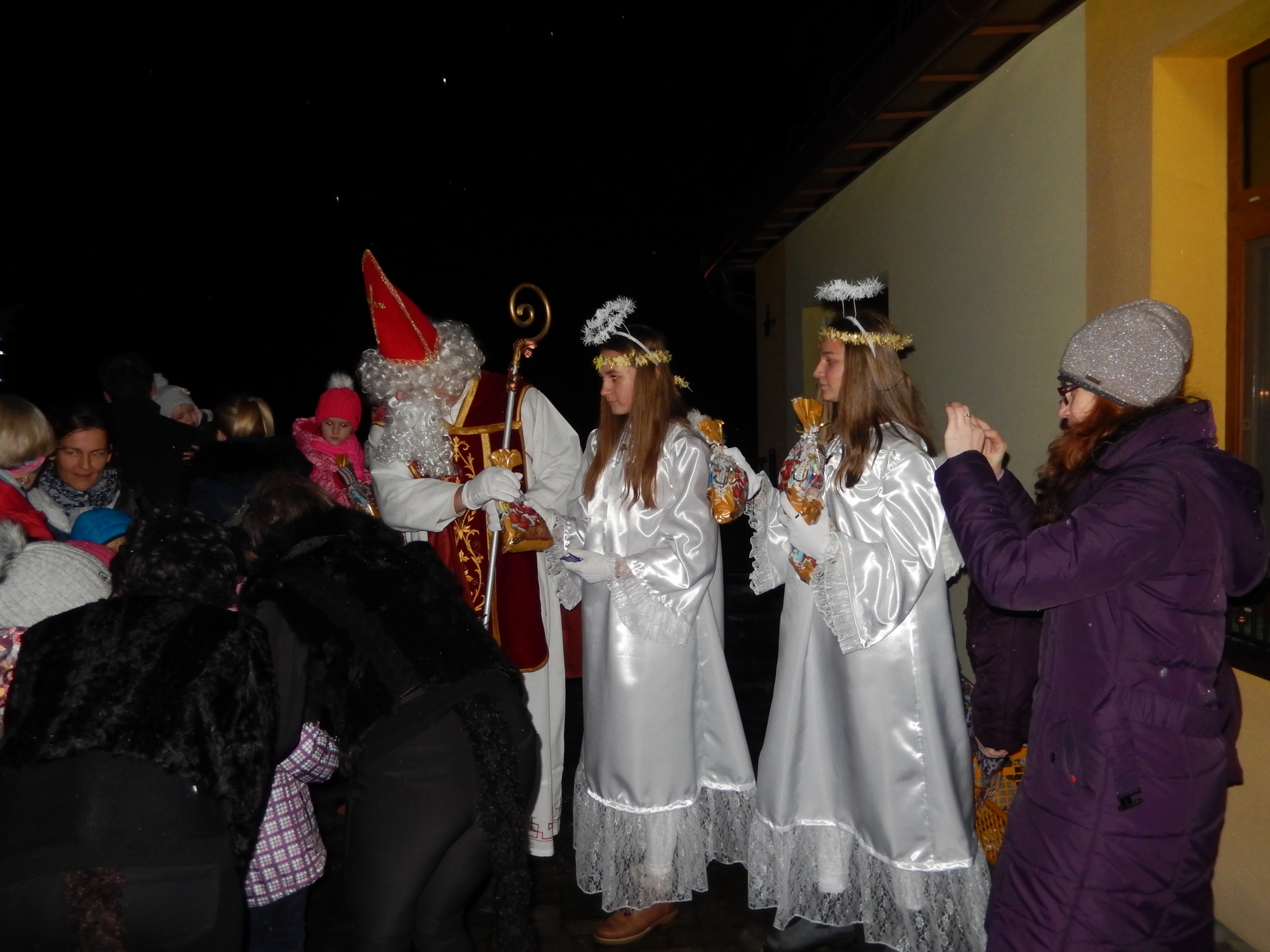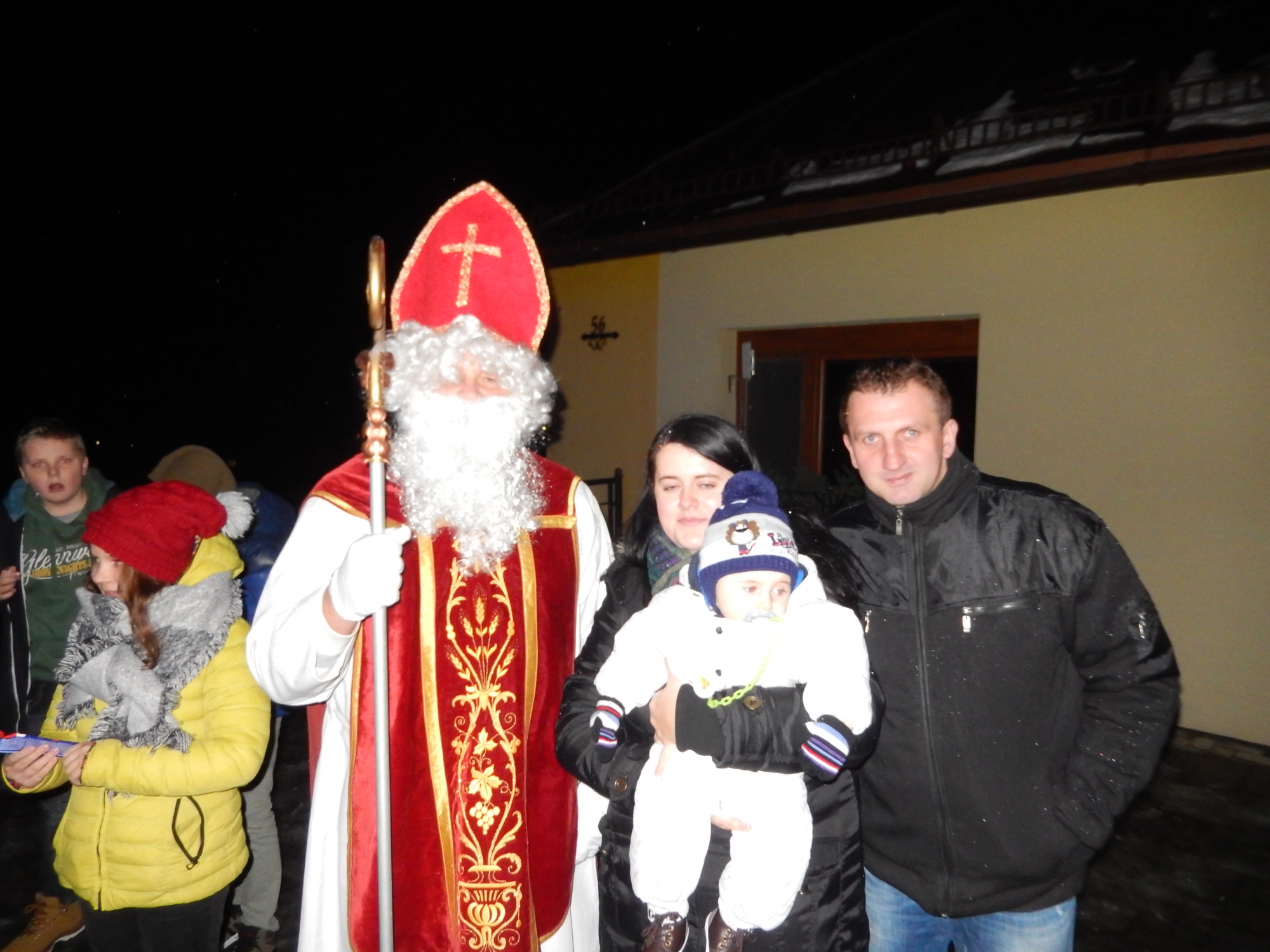 Svätý Mikuláš prišiel na svätú omšu. Tešíl sa koľko veľa detí prišlo,aby sa s nim stretlo. Na kostolnom dvore rozdal prítomným deťom balíčky.