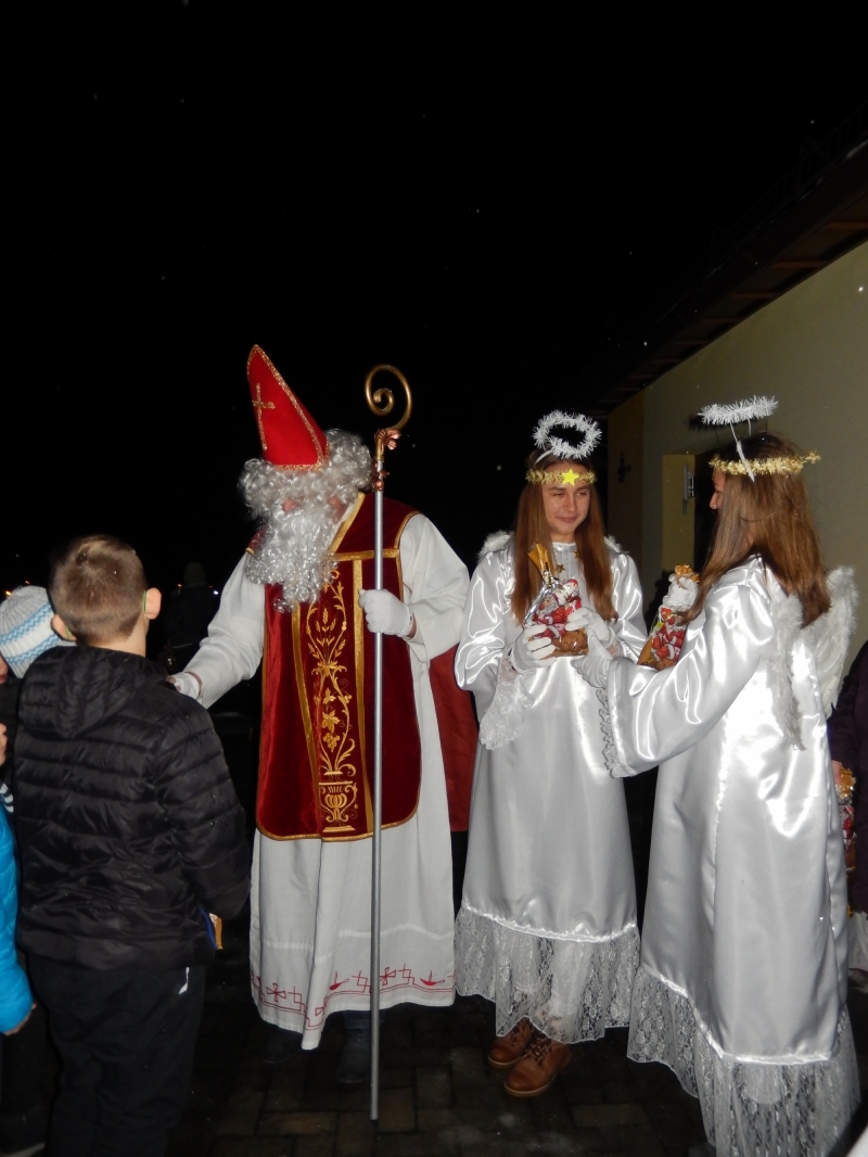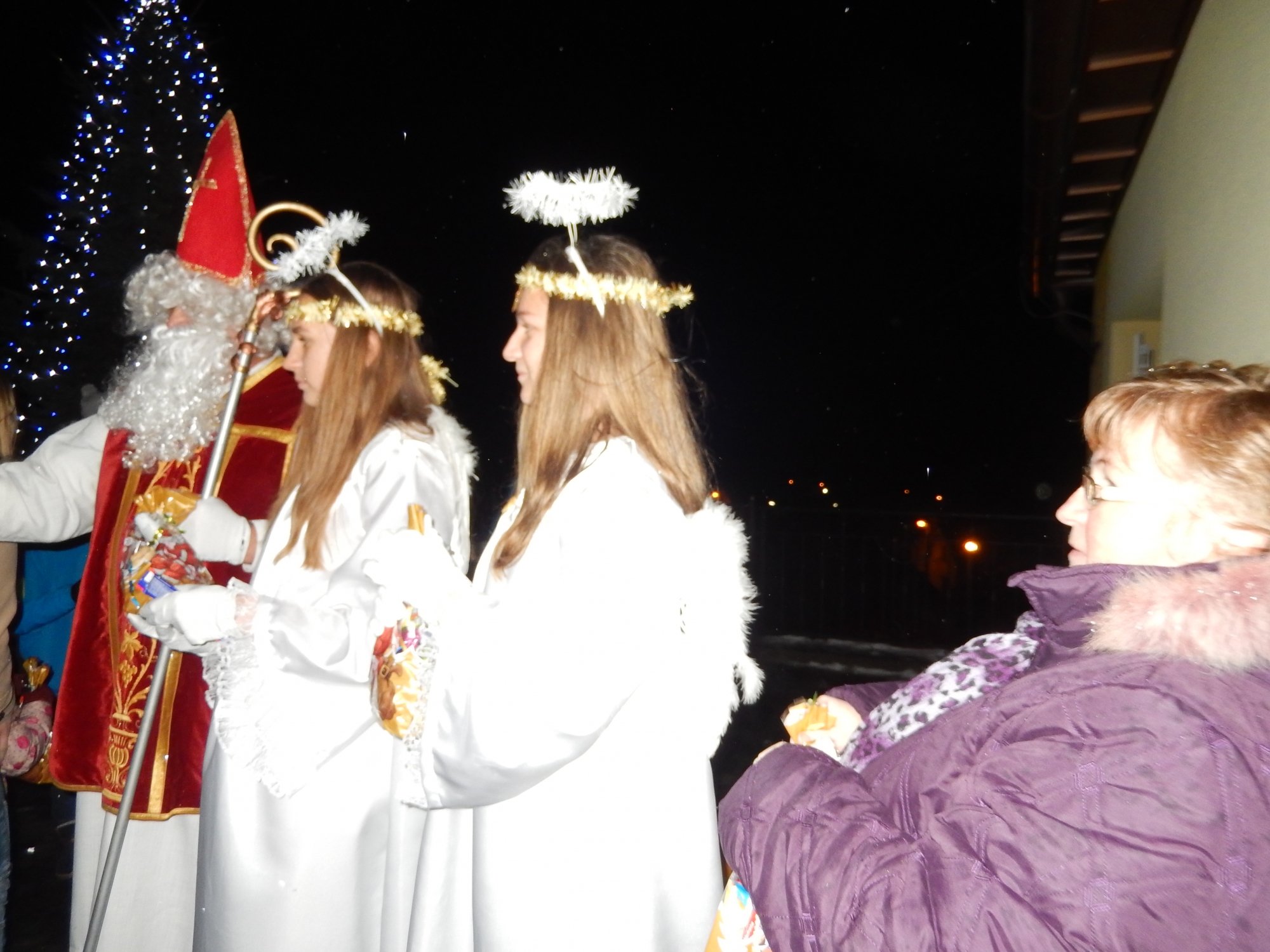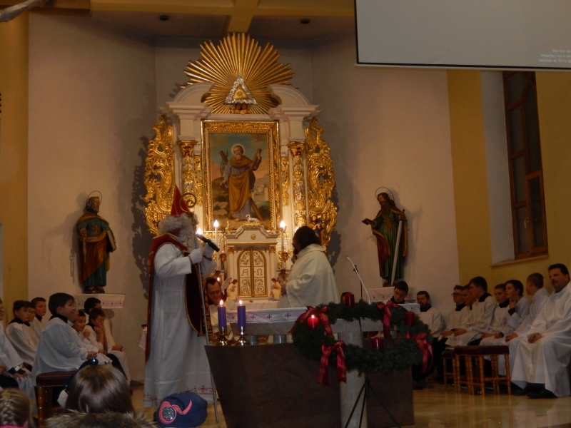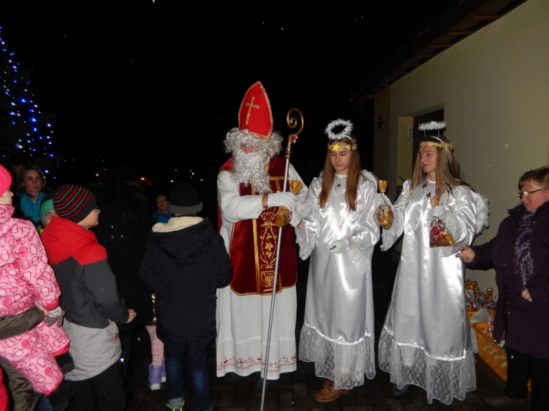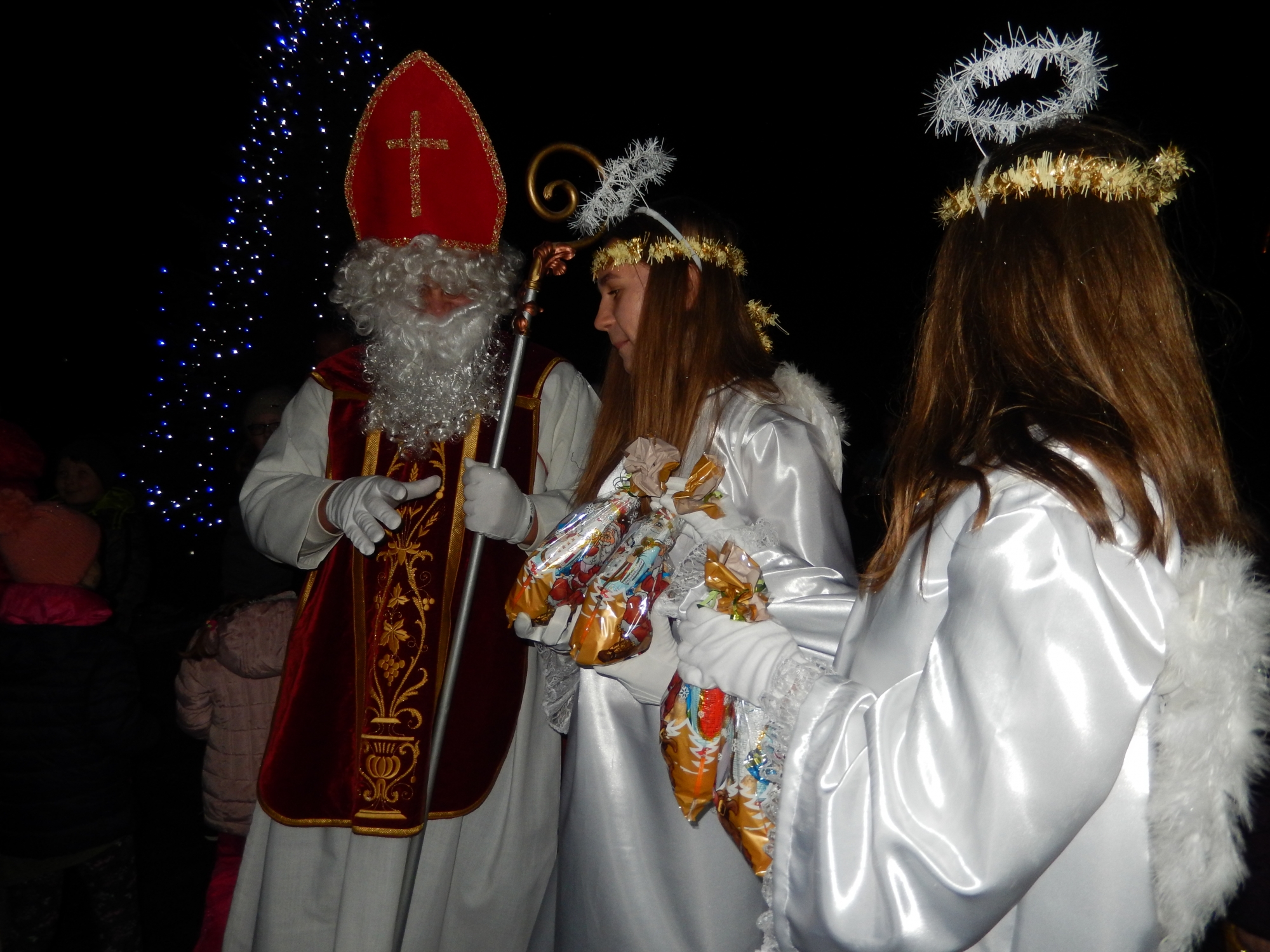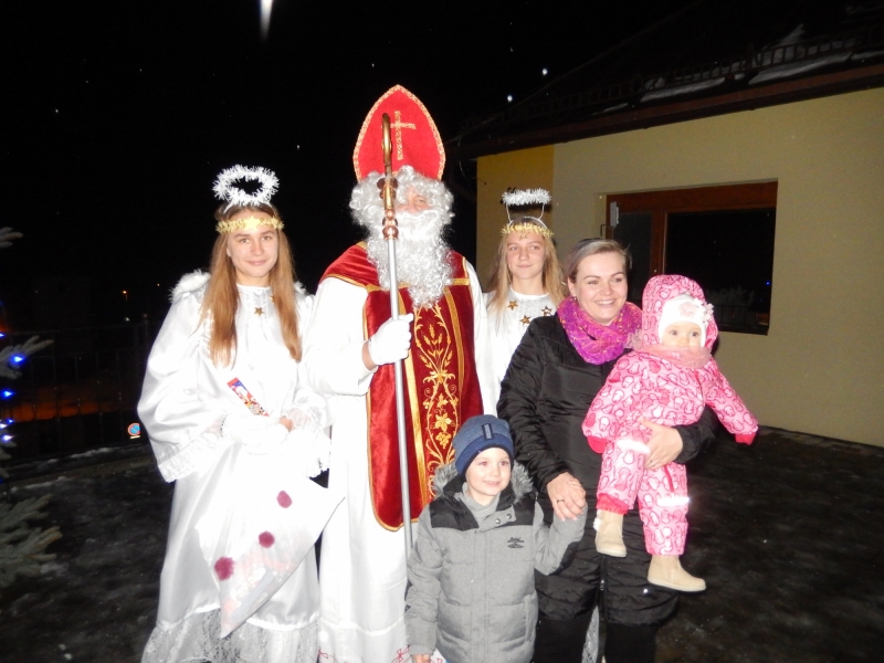 Svätý Mikuláš prišiel na svätú omšu. Tešíl sa koľko veľa detí prišlo,aby sa s nim stretlo. Na kostolnom dvore rozdal prítomným deťom balíčky.