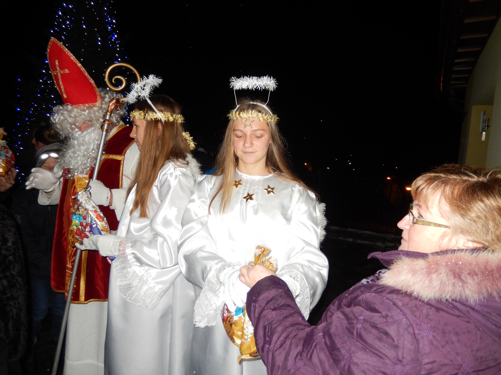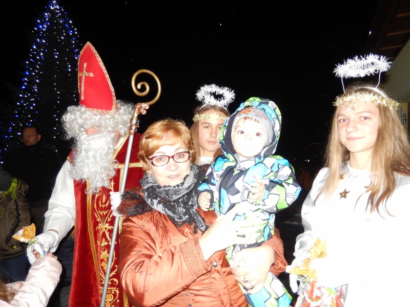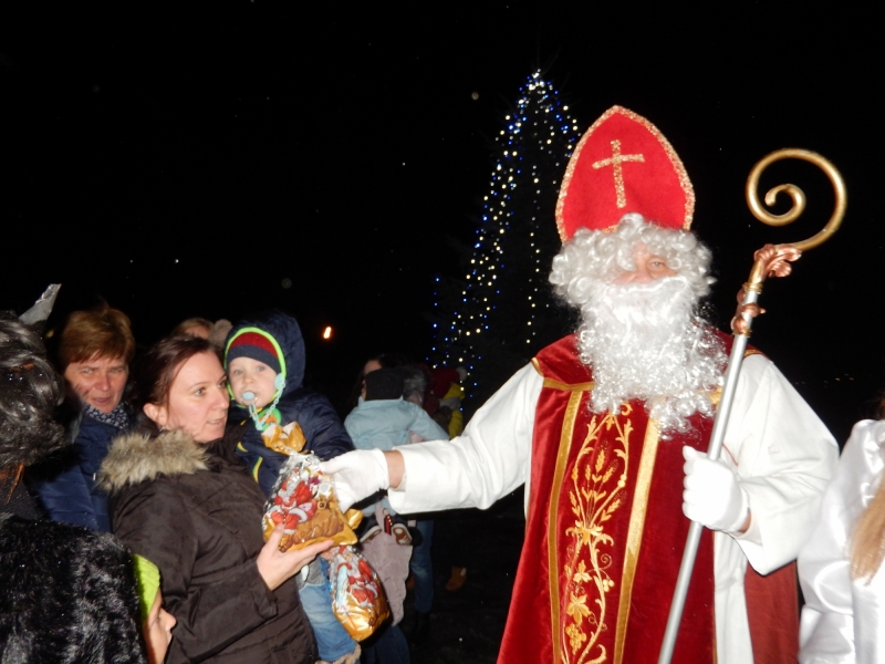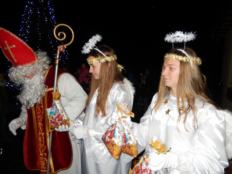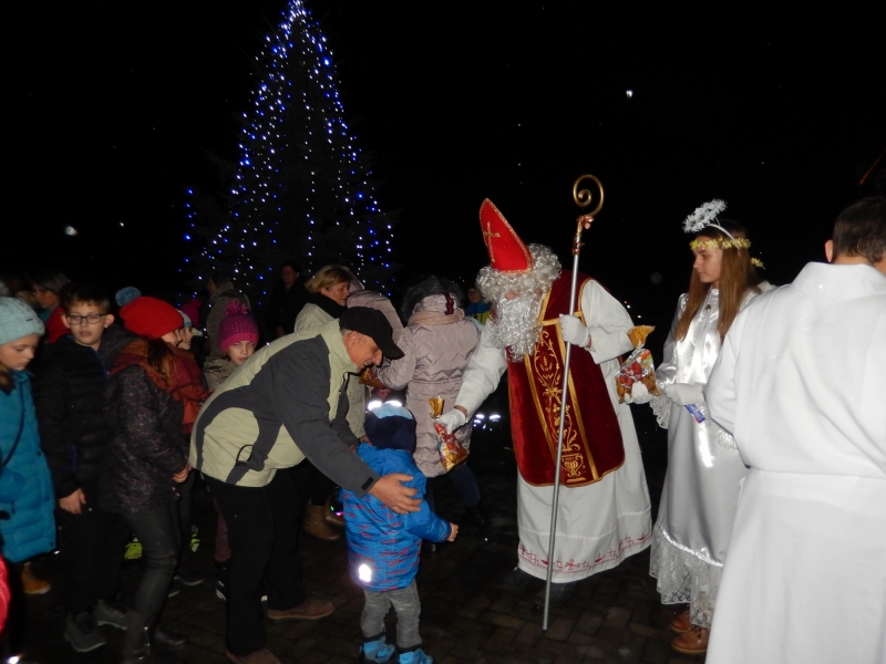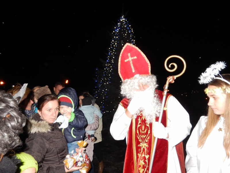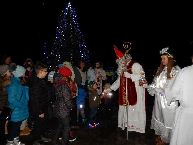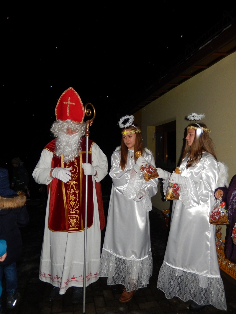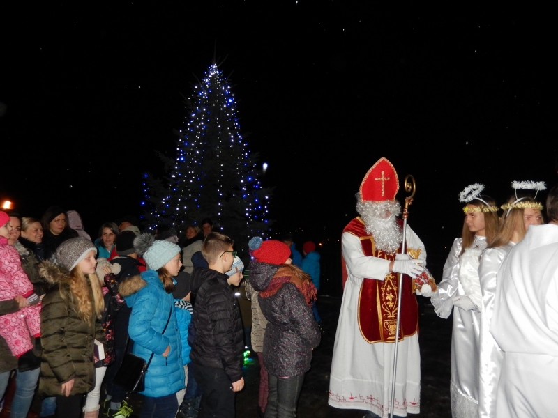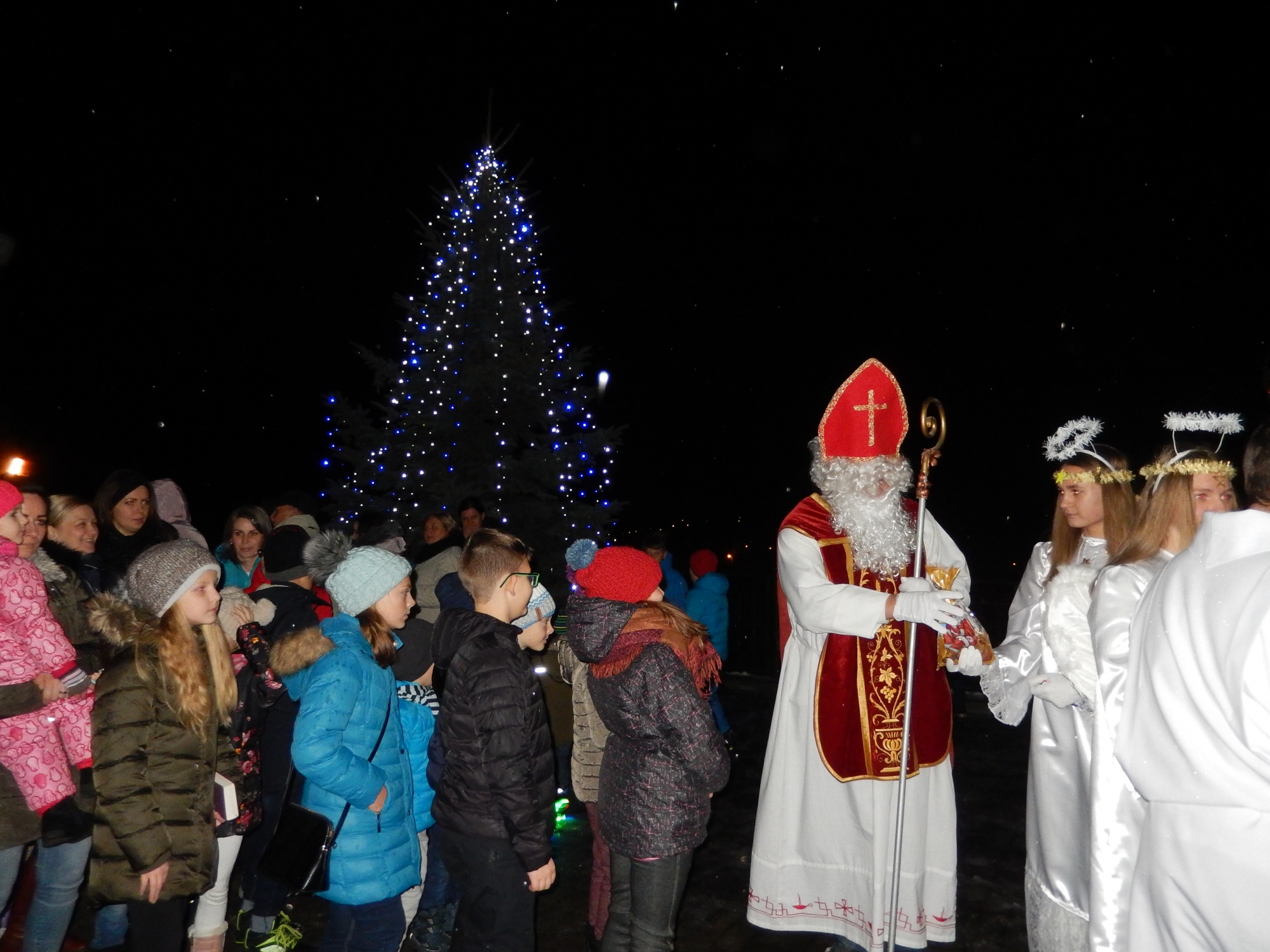 Svätý Mikuláš prišiel na svätú omšu. Tešíl sa koľko veľa detí prišlo,aby sa s nim stretlo. Na kostolnom dvore rozdal prítomným deťom balíčky.