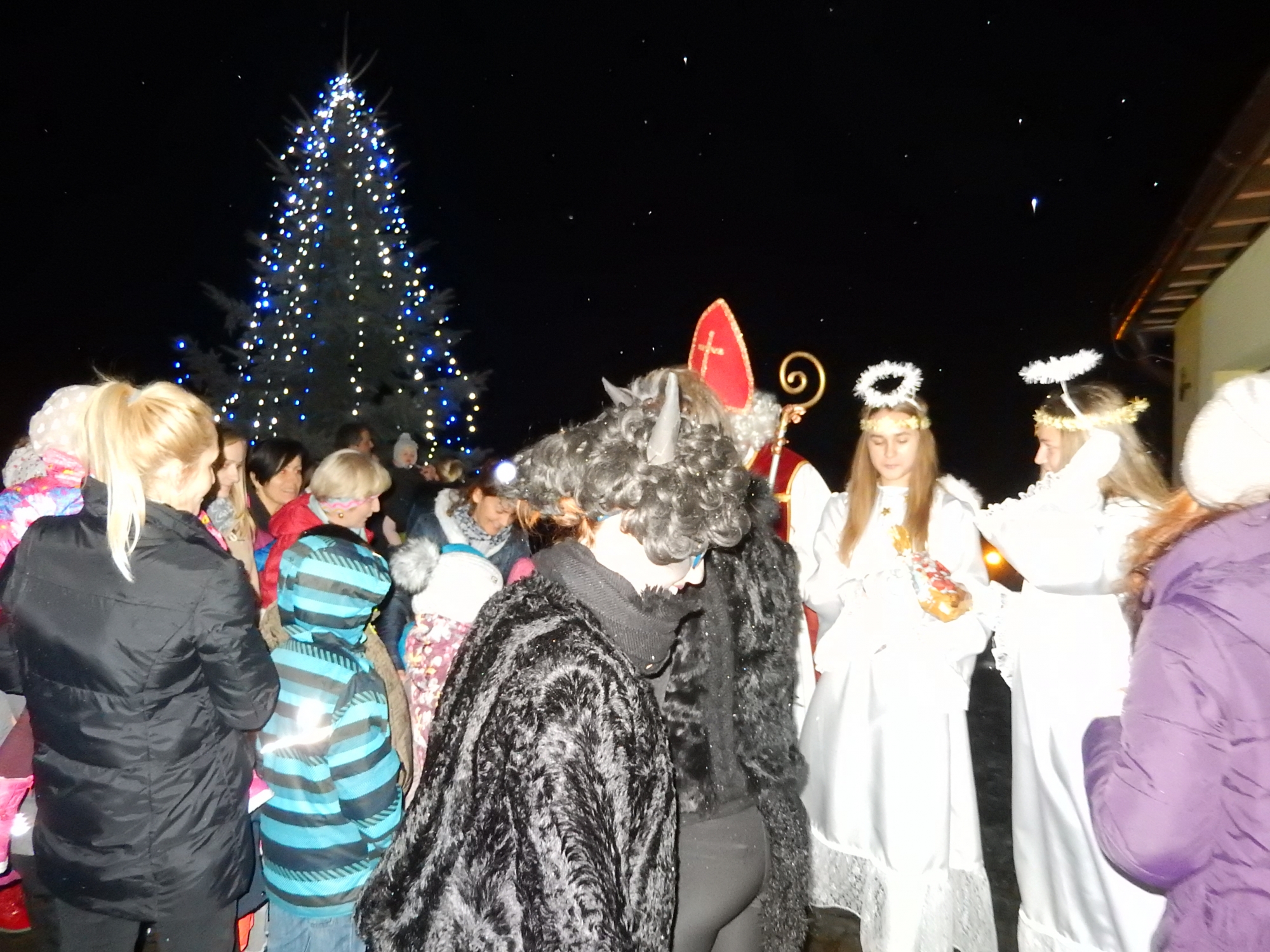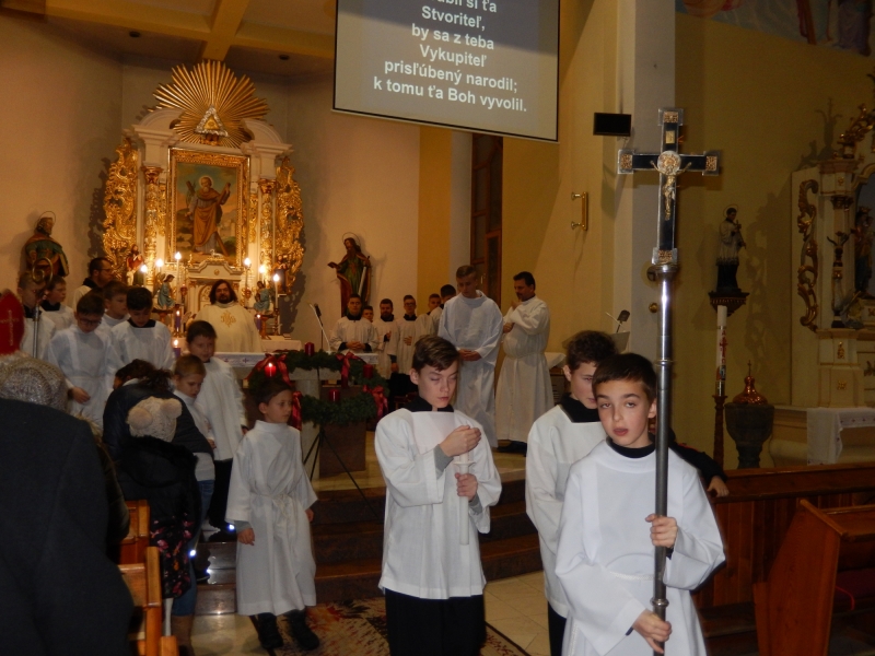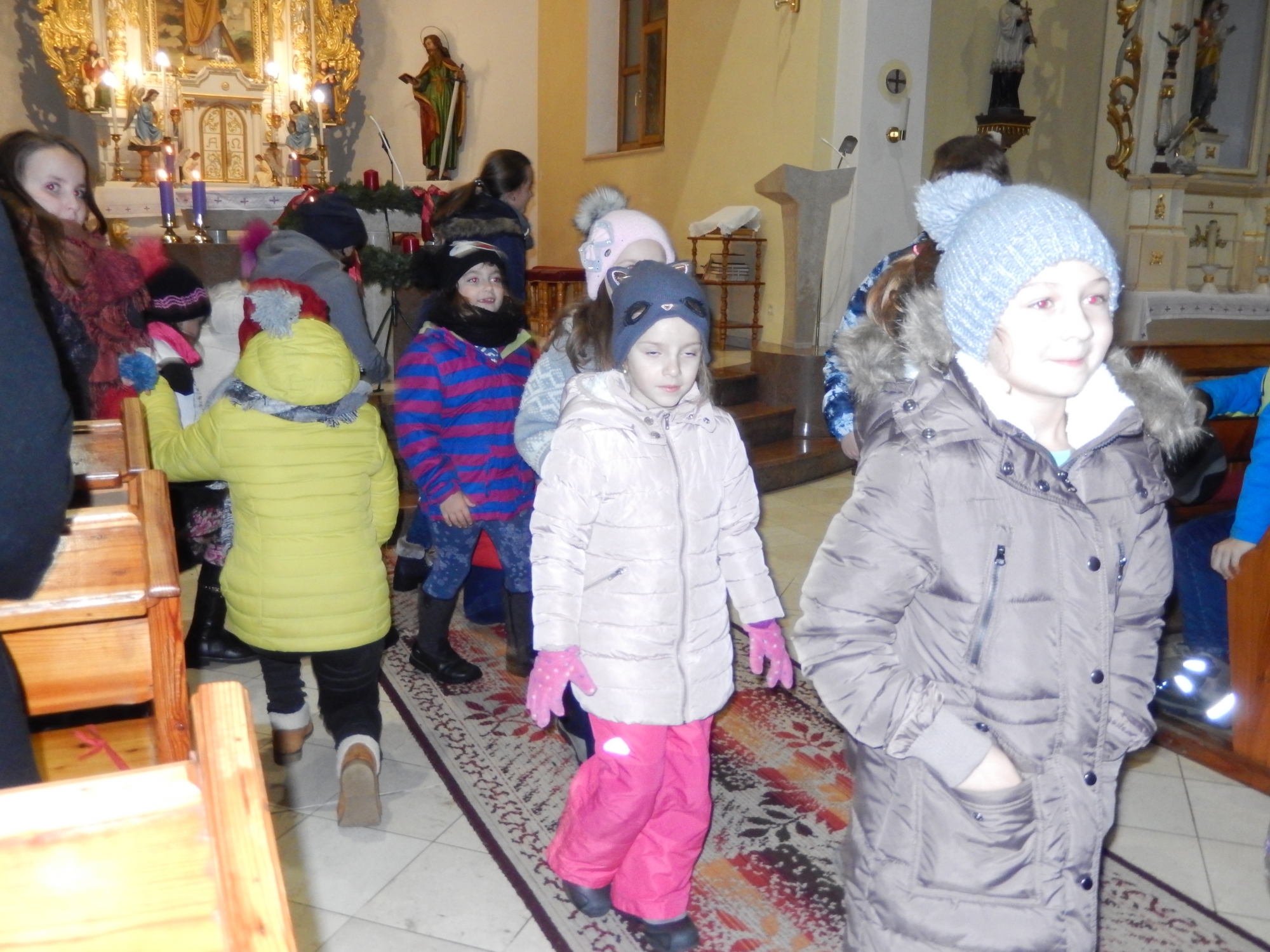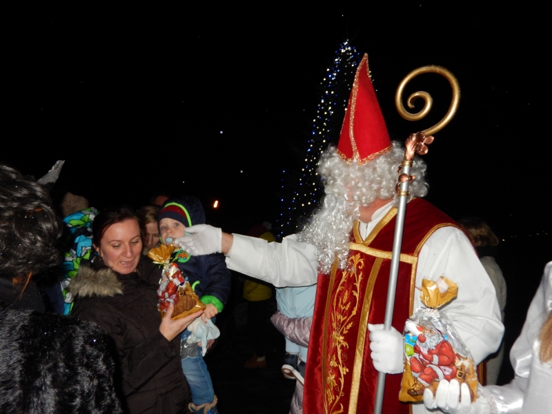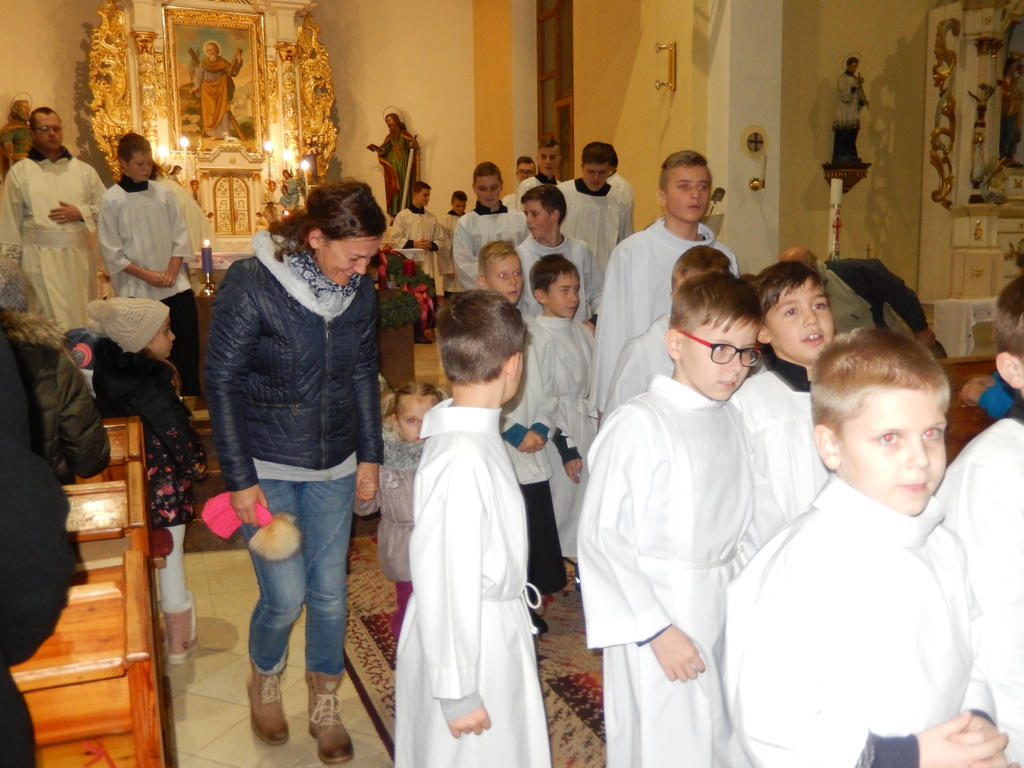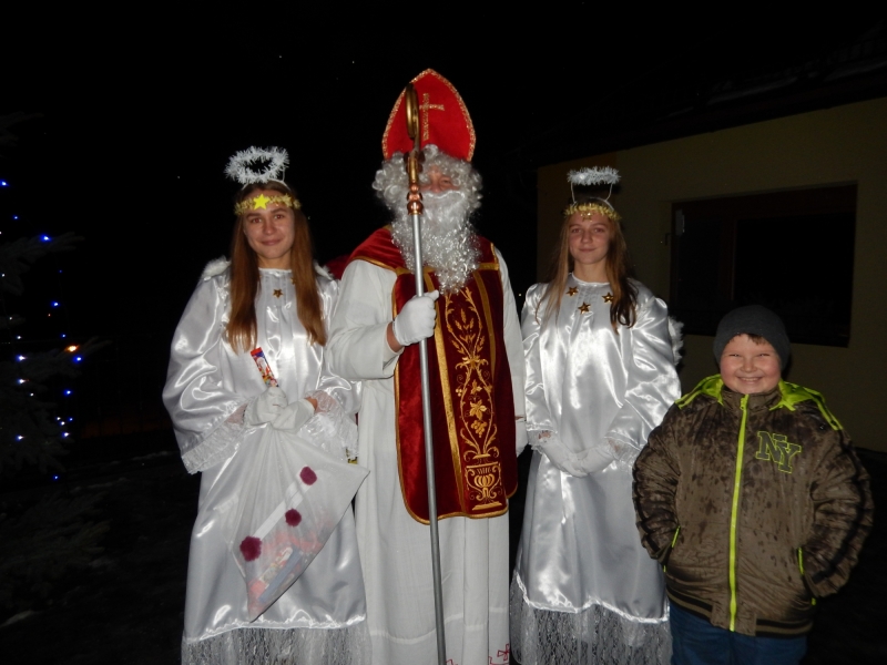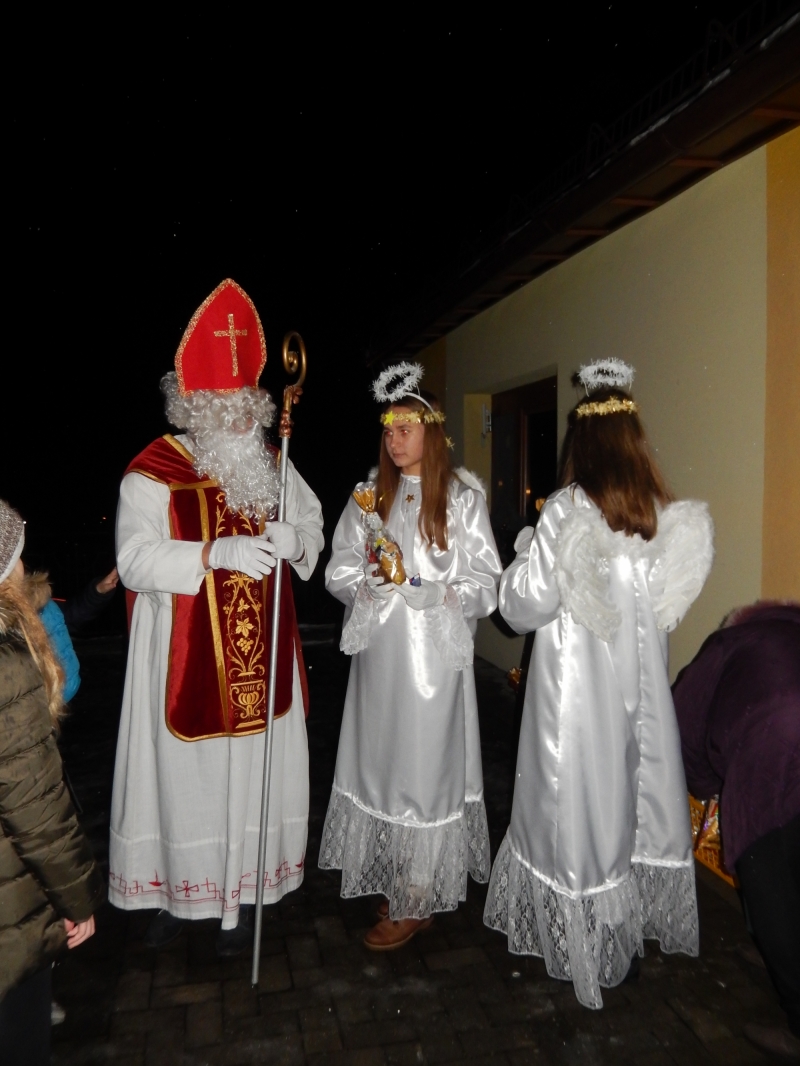 Svätý Mikuláš prišiel na svätú omšu. Tešíl sa koľko veľa detí prišlo,aby sa s nim stretlo. Na kostolnom dvore rozdal prítomným deťom balíčky.