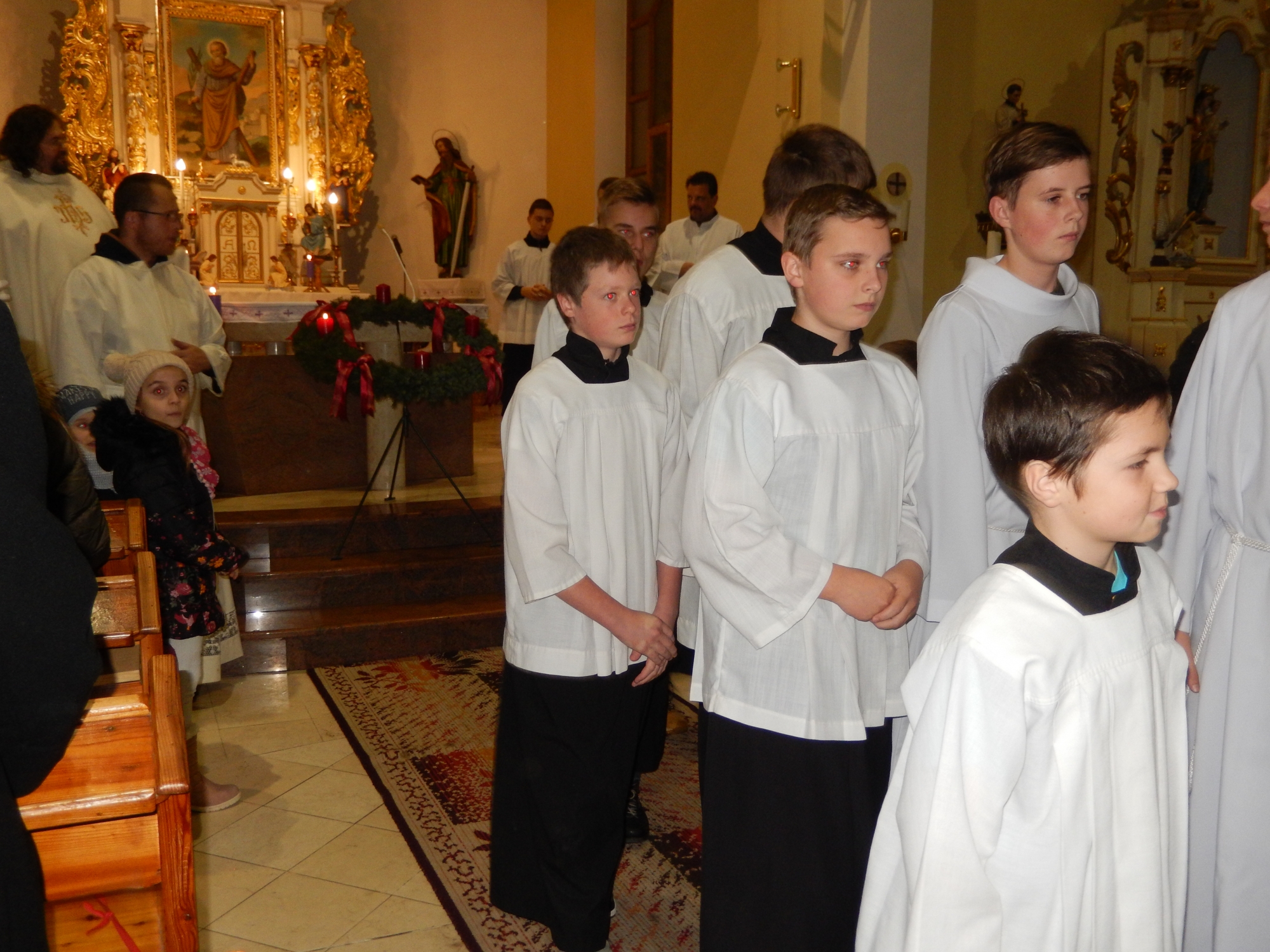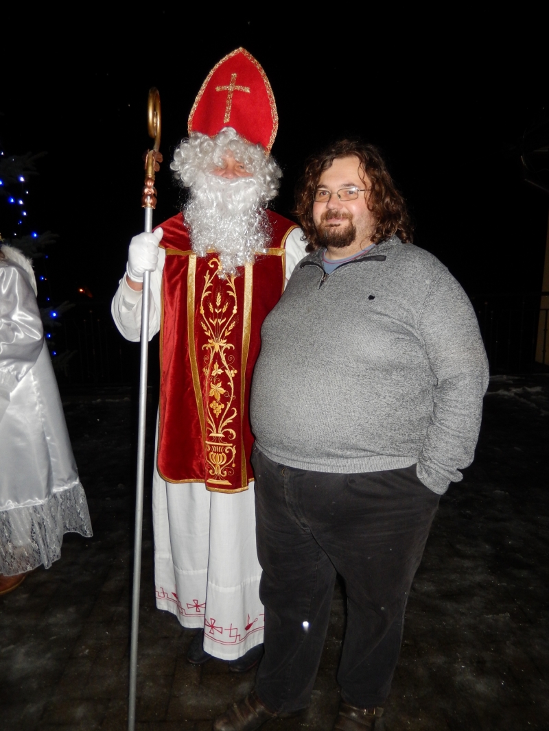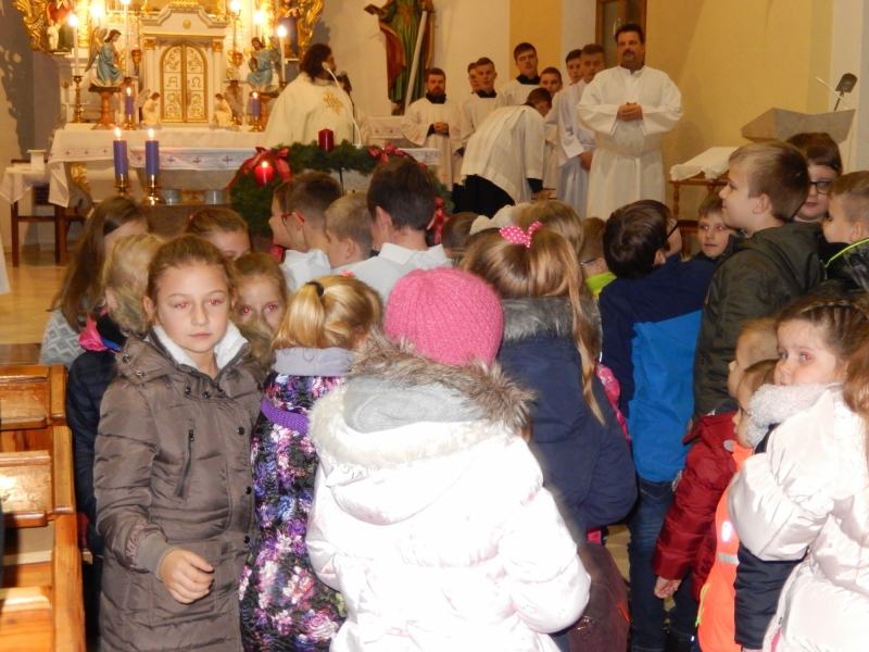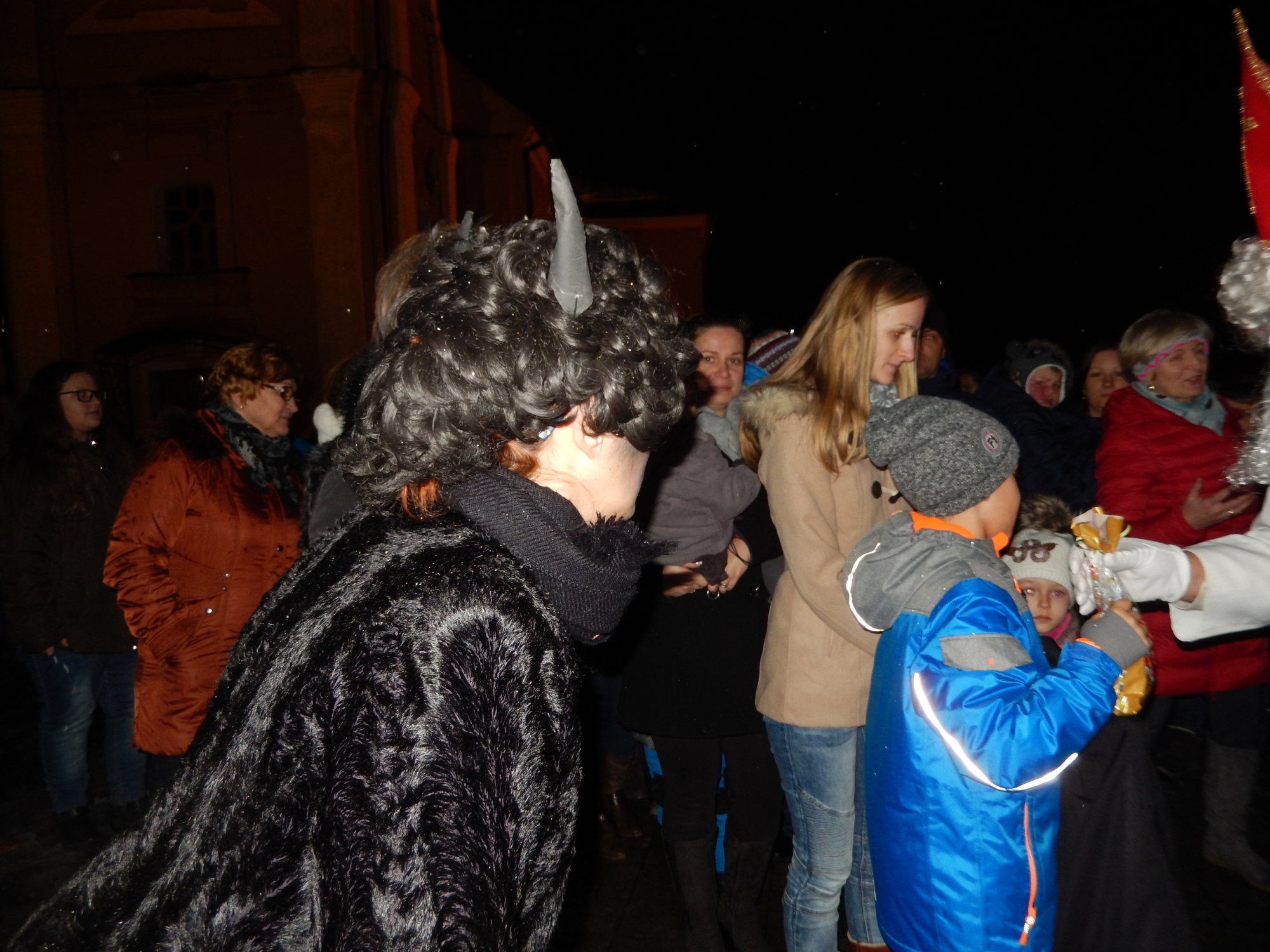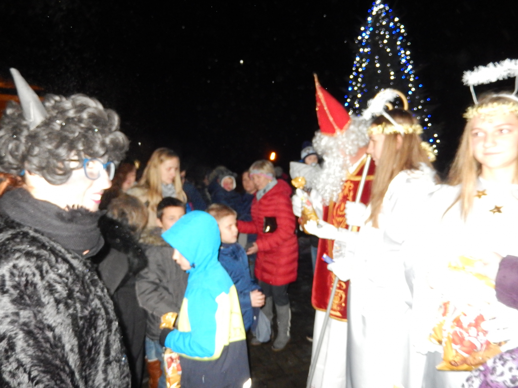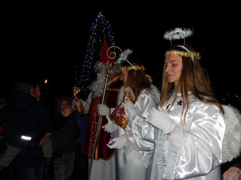 Svätý Mikuláš prišiel na svätú omšu. Tešíl sa koľko veľa detí prišlo,aby sa s nim stretlo. Na kostolnom dvore rozdal prítomným deťom balíčky.