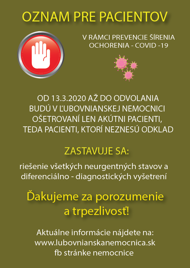 UPOZORNENIE z ĽUBOVNIANSKEJ NEMOCNICE