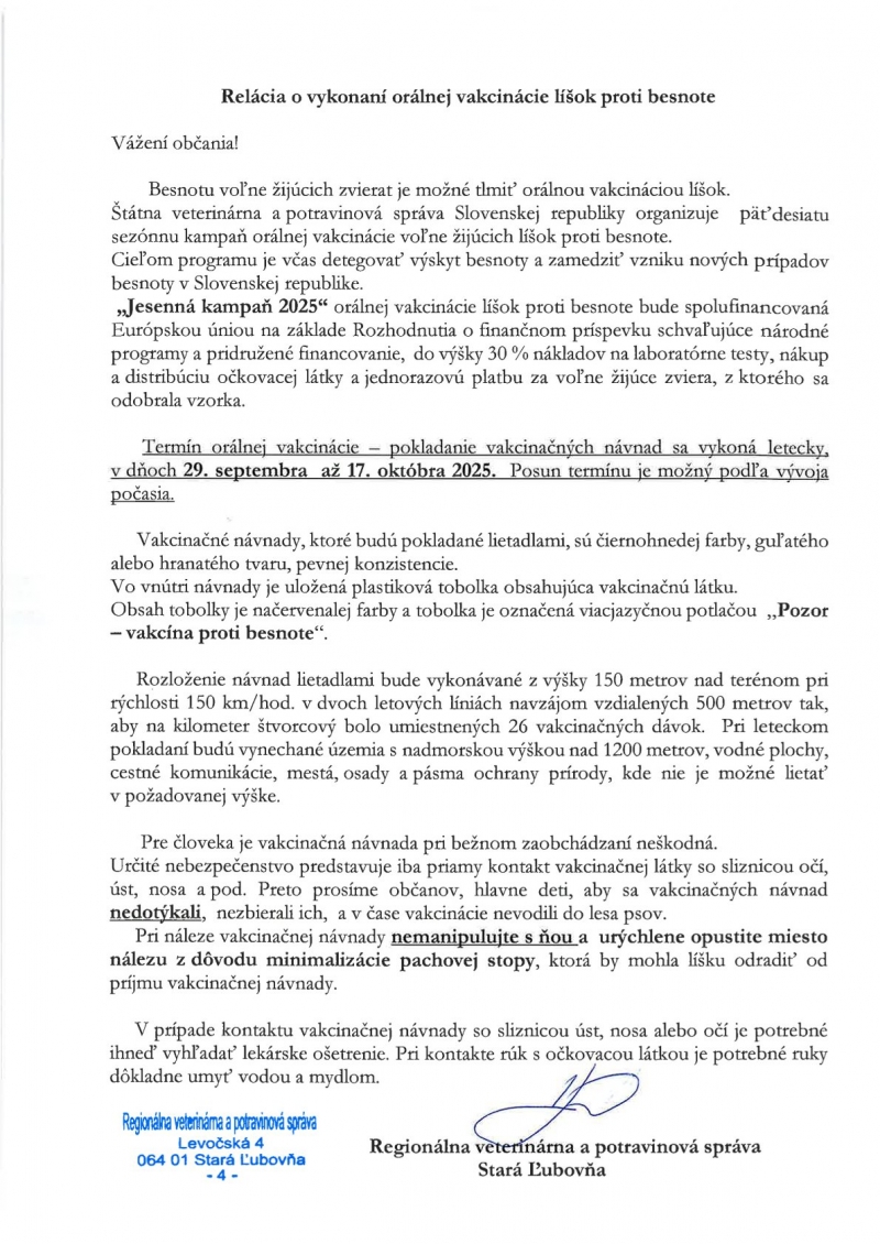Vakcinácia líšok proti besnote - jesenná kampaň 2025