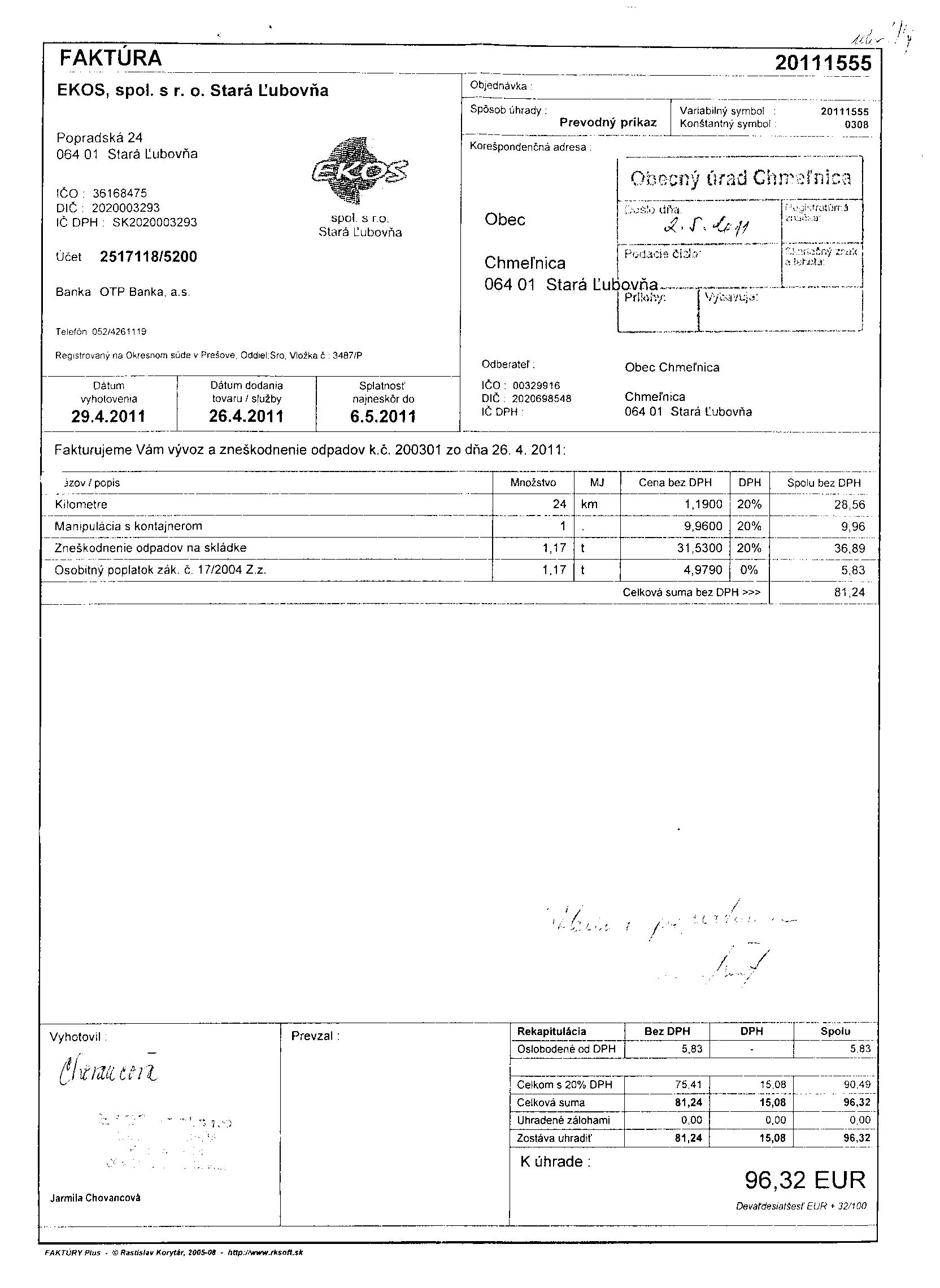 | Predmet : | Vývoz a zneškodnenie odpadov |